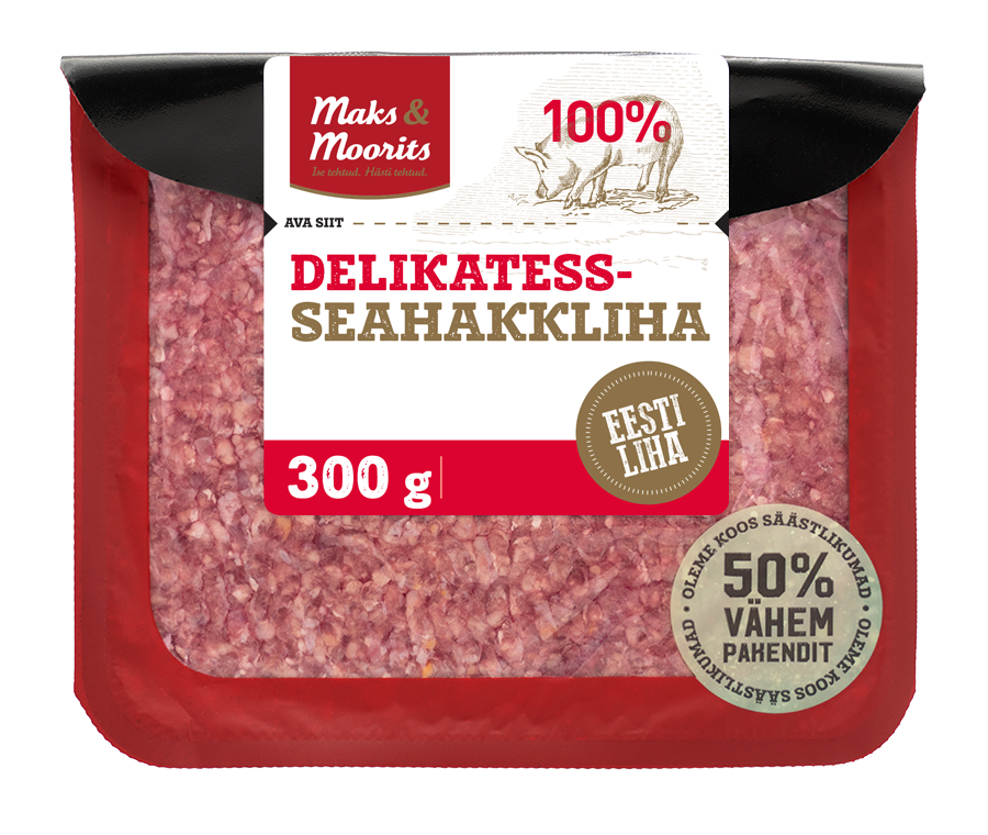 Sealiha 100%. Rasvasisaldus alla 12%. Kollageeni/lihavalgu suhtarv alla 18%. Valmistatud: Eesti 16. Sealiha päritolu: Eesti. Hakklihatooteid tuleb küpsetada, kuni toote sisetemperatuur on vähemalt +71 °C.