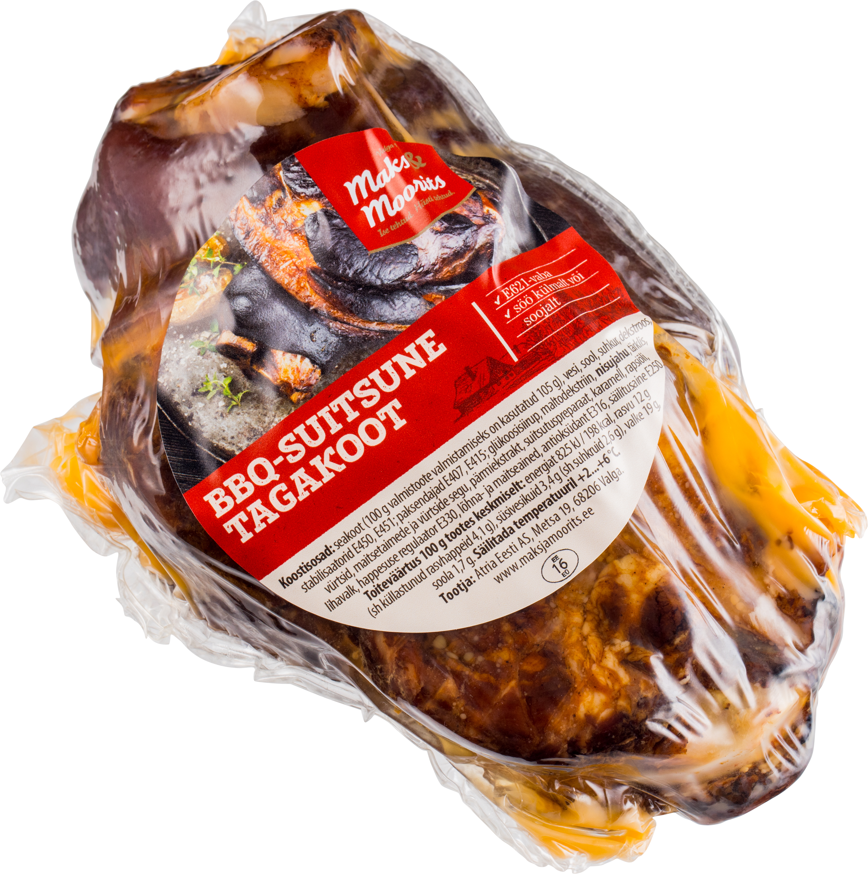 Ehtsa lepasuitsuga suitsutatud ja 8 tundi küpsenud tagakoot magusvürtsika maitsestusega.