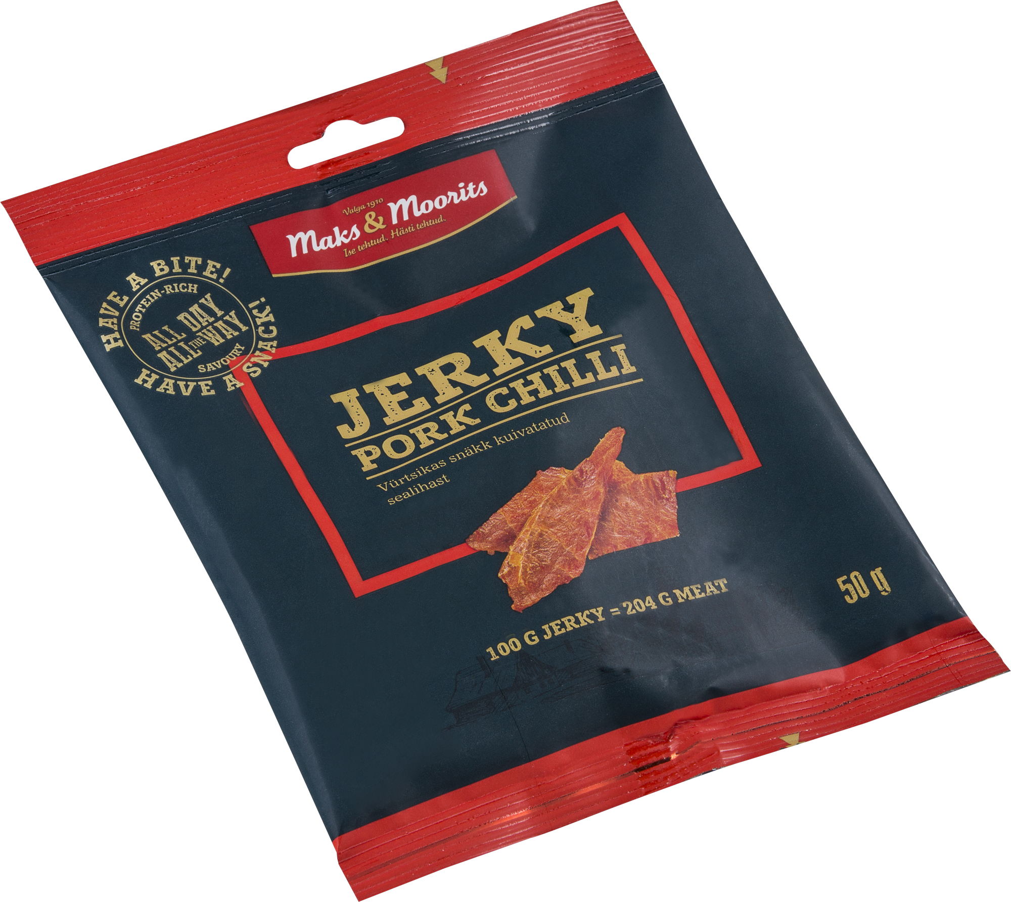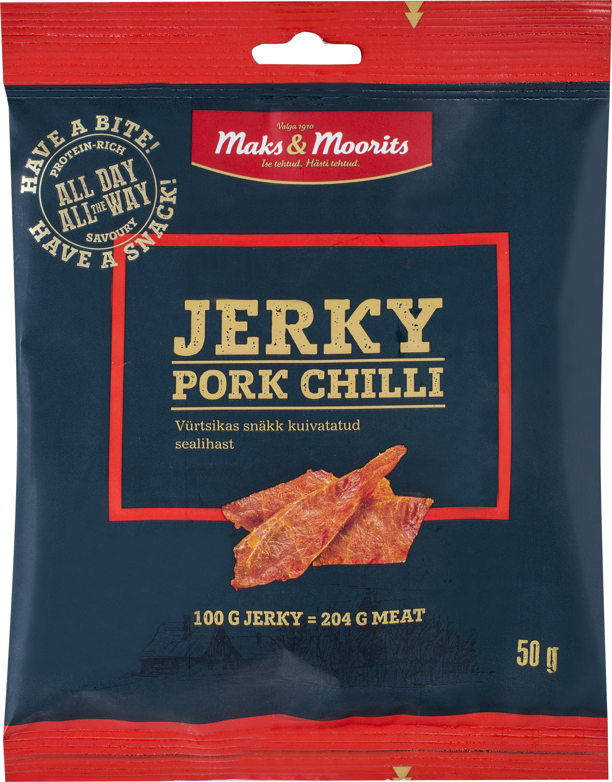 Suur pilt: Jerky Pork Chilli 50g otse, Jerky Pork Chilli 50g diag,