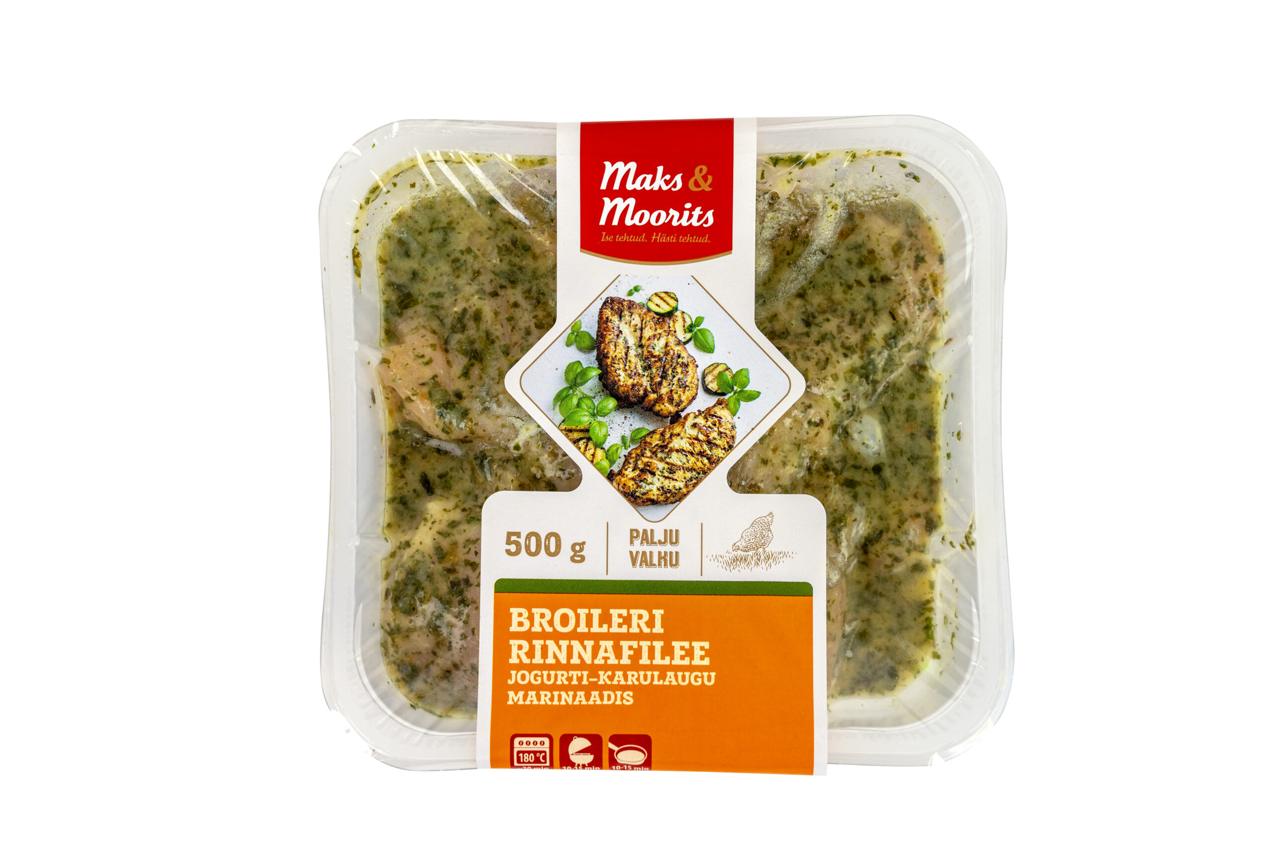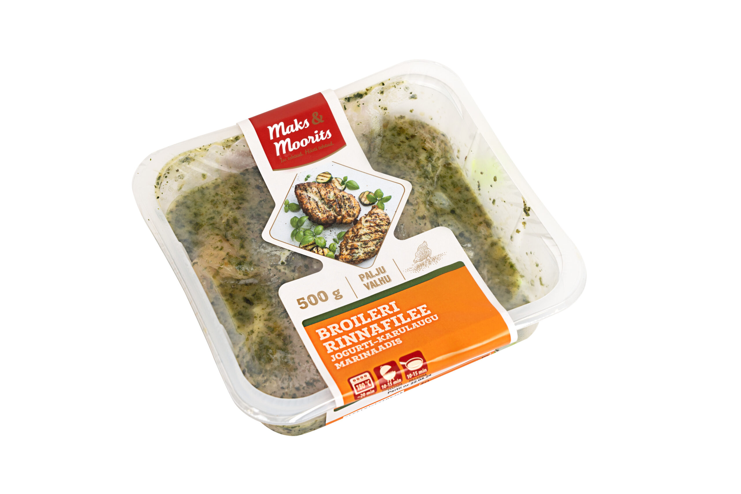 broileri rinnafilee (82%) mahedas jogurtimarinaadis, millele annab kerge maitsenüansi karulauk.