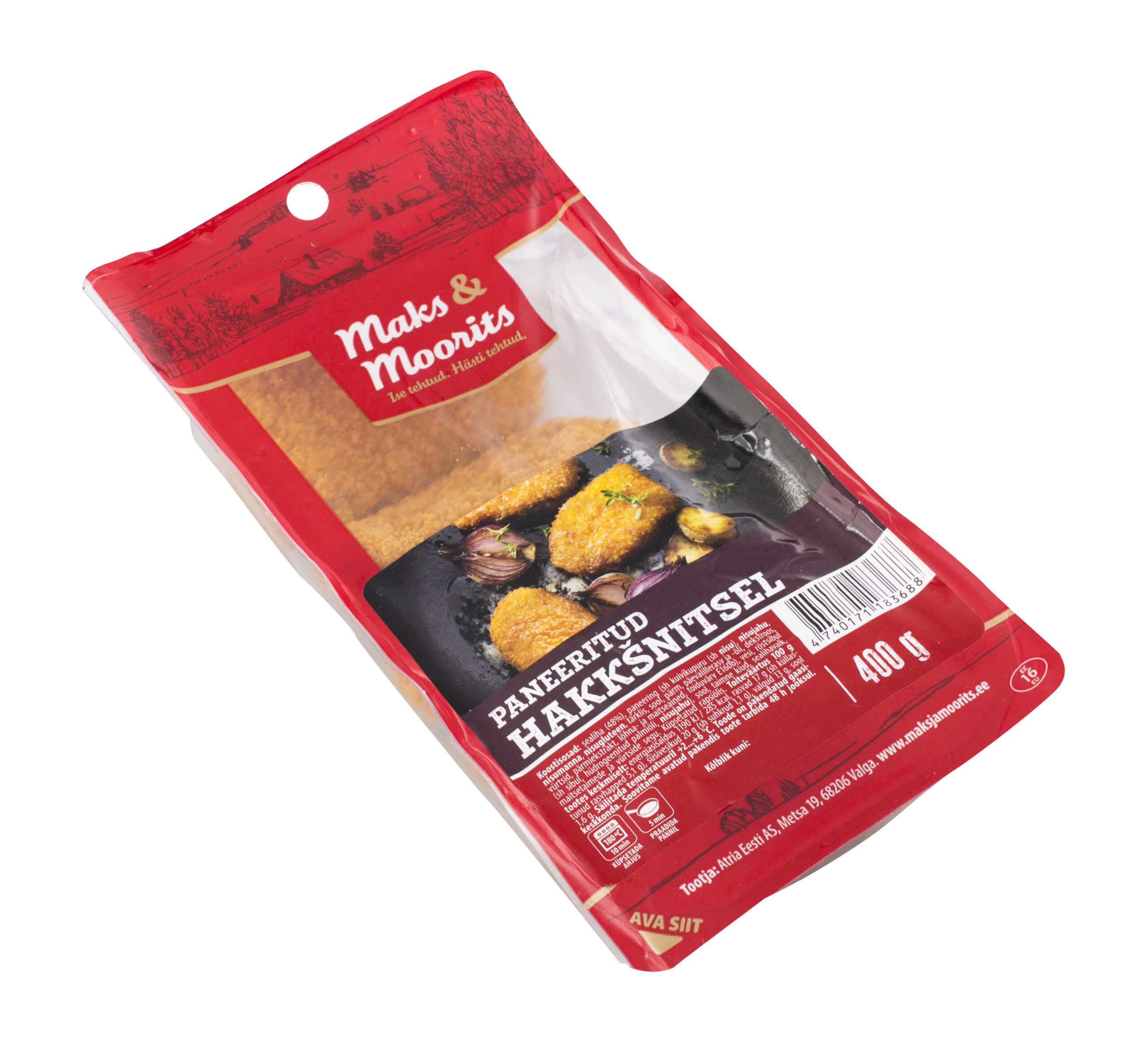 Küpsetatud ja paneeritud hakkšnitslid sealihast.