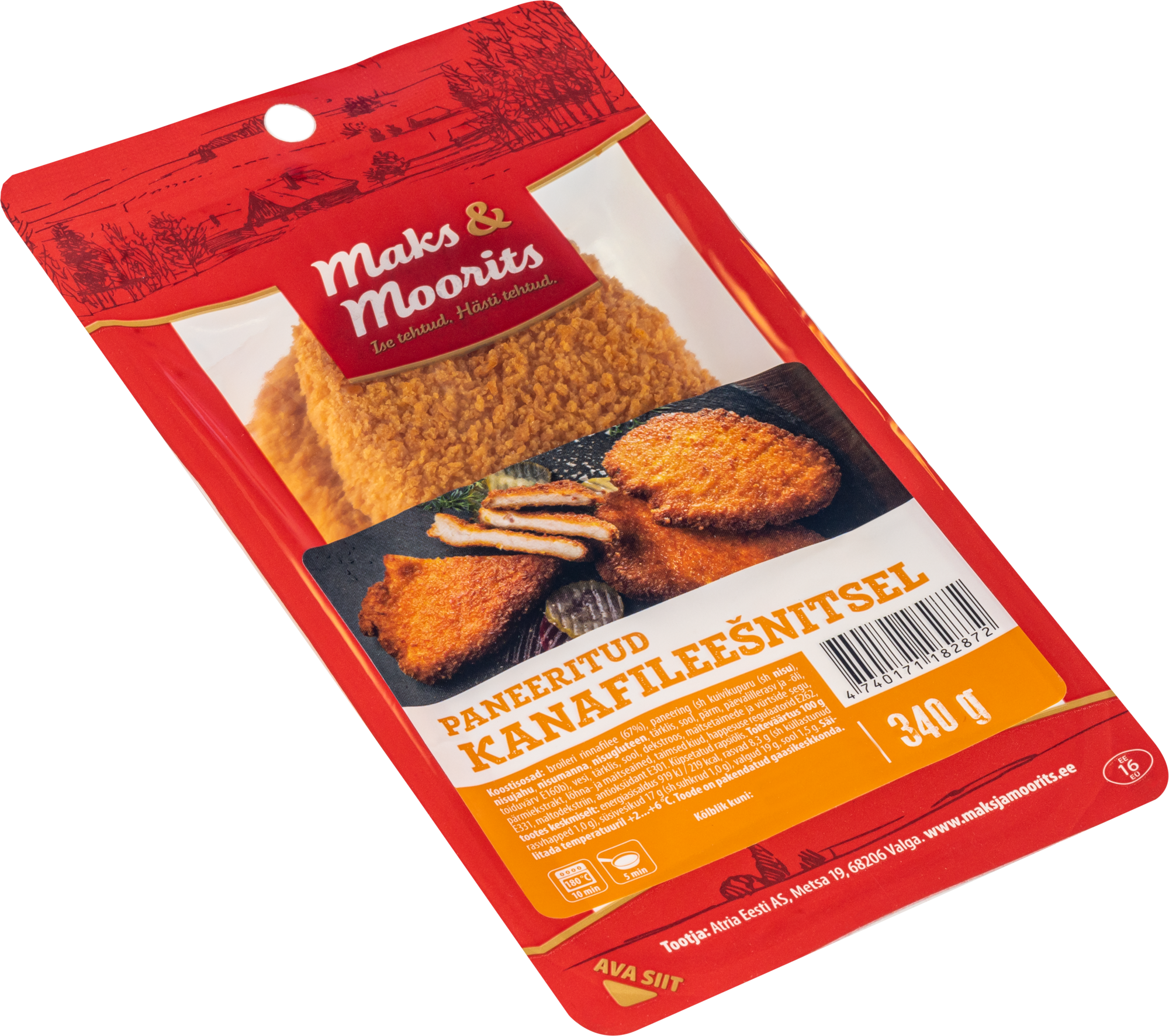 Küpsetatud ja paneeritud šnitslid broilerifileest.
