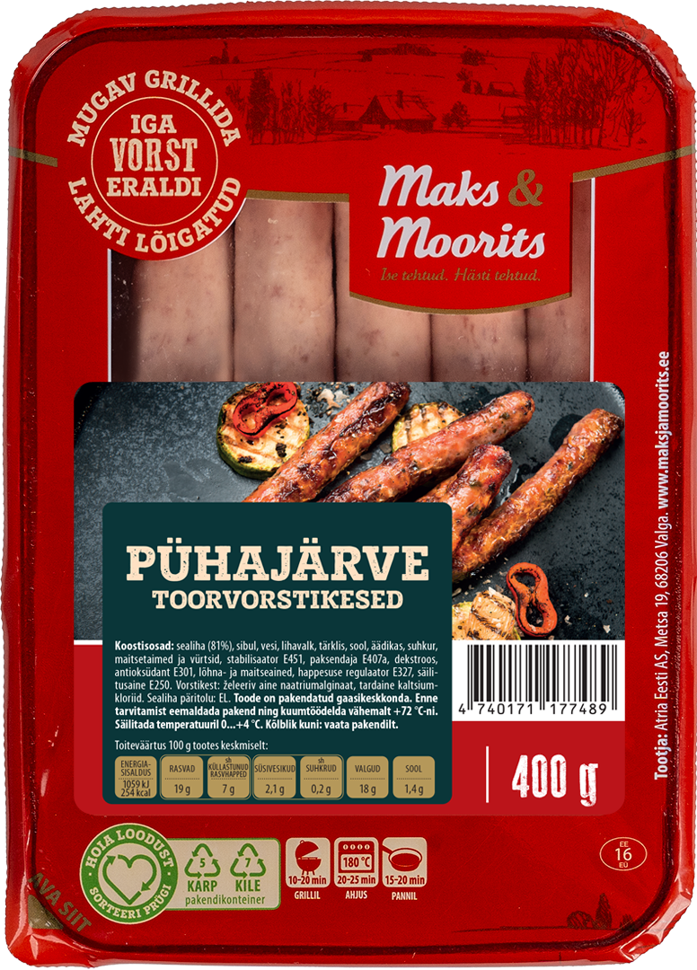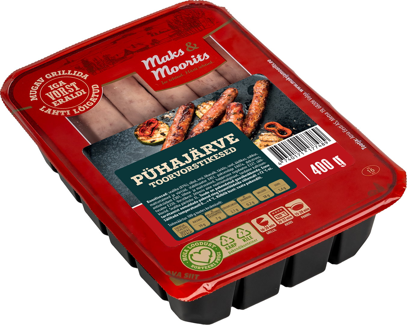 Klassikaliselt maitsestatud toorvorstid. Lahti lõigatud ja ühtlase suurusega